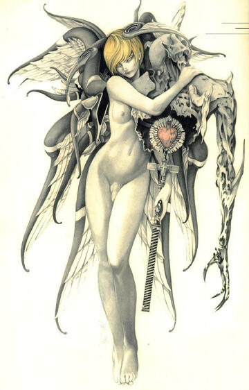 Illustration of Satan (Devilman) by Takeshi Obata. This drawing was included in the art book ‘Illustrations of Devilman’ published in 1999 by Kodansha, as part of an event that began in 1996 to honor Devilman creator Go Nagai. Famous illustrators and artists were invited to submit fan art of Devilman and this was Obata’s submission [press link in the source]. Of note, Obata says in How to Read that the design of L from Death Note was partially inspired by Akira Fudou in Devilman, particularly L’s eye bags. (Source Kiranatrix on Tumblr)